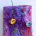 Enkele weken geleden heb ik deze vilten book cover gemaakt voor het lentefeest van een speciaal meisje. Als ondergrond gebruikte ik zijde, daarboven verschillende kleuren paars, blauw en rode wol. Ik werkte dit alles af met kleine glasparels, een gevilte bloem, enkele maanvormige accessoires, een oorring en een grote knop.